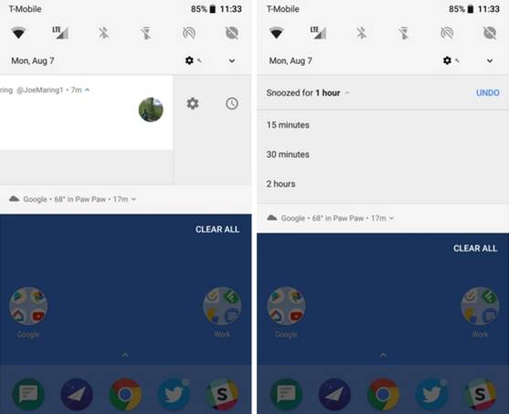 Android 8.0应用图标的右上角有一个小点,它代表未读通知。对此,TechCrunch强调,这是自第一代iPhone发布以来iOS中的一项主要功能,而不少安卓手机厂商也都模仿苹果在系统中定制了这个功能。通知栏中Android 8.0还增加了与用户的互动,比如长按带有通知标记的应用图标,系统就会弹出菜单,提供应用功能预览,就像iOS中的3D Touch功能。
