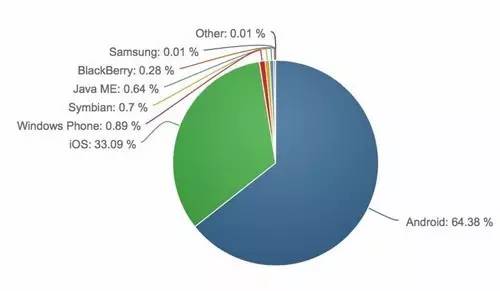 移动操作系统方面,iOS 在7月占移动操作系统市场份额的 33.09%,低于 6 月份的 43.95%。相比之下,Android 的市场份额为 64.38%,Windows Phone 为 0.9%,Java ME 为 0.64%。 iOS 的历史最高纪录是 2012 年 7 月的 65.94%。