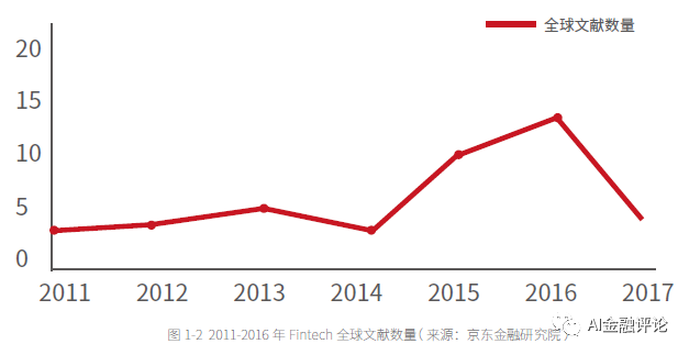 报告显示,全球对Fintech这一新兴概念的深入研究才刚开始,从2011 年至今,相关文献数量逐年增多。