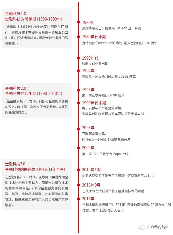 报告借用国际证监会组织(IOSCO)于2017 年2 月发布的《金融科技研究报告》中对金融科技的定义——金融科技是指“有可能改变金融服务行业的新兴科技和创新商业模式”,从新兴科技和创新商业模式演进两个方面,将金融科技的发展历程分为1.0、2.0、3.0三个时期,刻画出金融科技大致脉络: