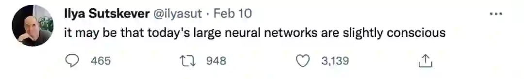 例如,2月中旬,OpenAI 的首席科学家 IIya Sutskever 就曾在推特上发起对 AI 意识的讨论。当时,他说: