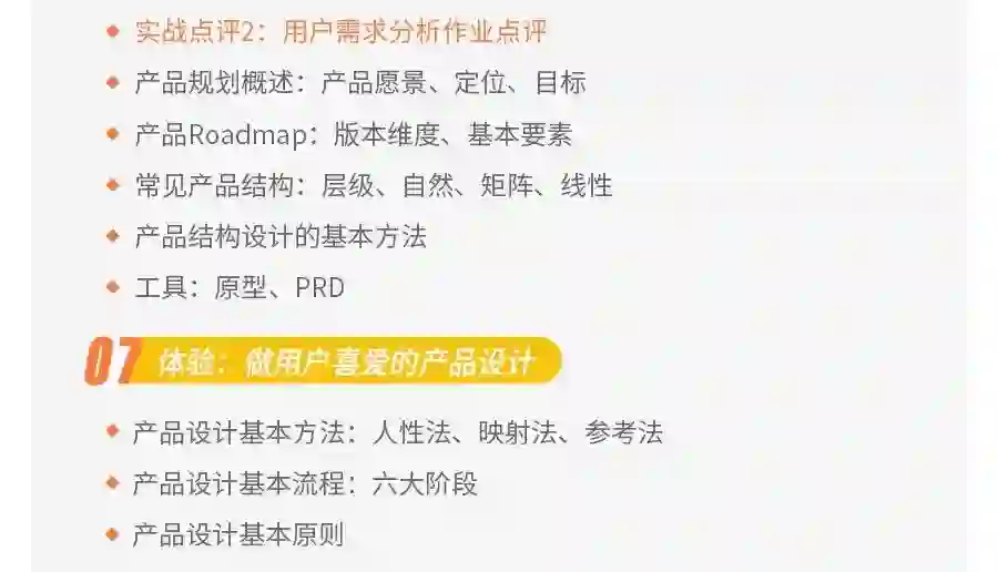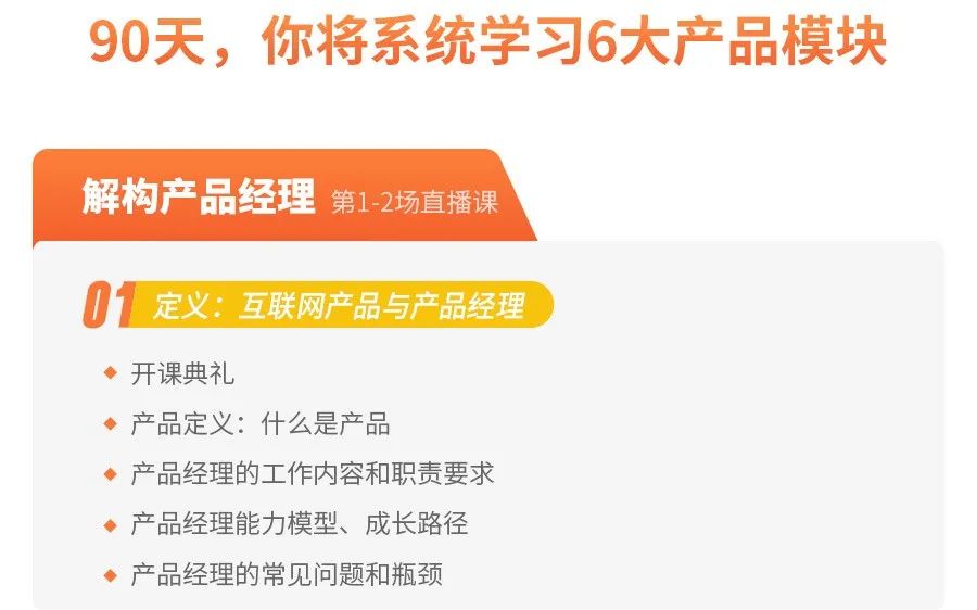这门课程结合了大厂产品经理成长体系以及产品经理实际技能应用,系统地覆盖了产品知识核心6大板块,供大家体系化的学习参考。