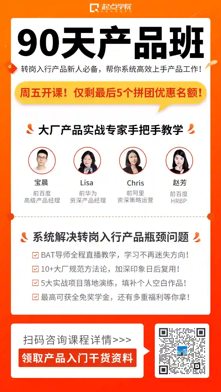 那为了帮助这些刚入行以及想入行产品经理的同学,能更快地掌握系统的产品知识与流程,顺利拿到offer并上手产品工作,在此真诚向你们推荐这门由BAT资深产品导师带领新人入门的【90天产品经理实战班】课程。