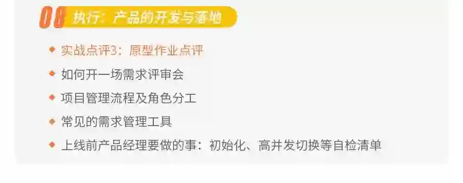 从竞品分析、需求筛选,到产品方案构建和评审,模拟完成一次产品迭代的全过程,5次项目实战机会、十多次课后作业,均来自一线互联网公司的真实案例,更贴近产品经理工作实际场景。