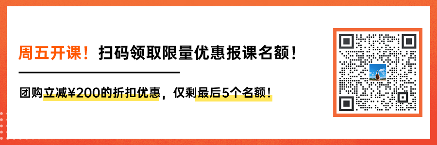 48期班级即将在周五(10月30日)开课,现在拼团报名立减¥200!抢先报名即可进班预习,详情可以扫码咨询学习顾问老师哦 ~