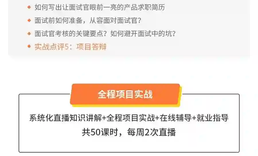 进入一家大型互联网公司实习了3个月,并独立负责某个产品功能1-2个版本的产品工作,了解产品从0到1全流程,掌握一套完整的产品知识体系,最后还收获了一份可以提升90%面试通过率的作品集,在这里实现“搭建产品体系知识框架,培养成型产品思维,高效上手产品工作”的学习目标。