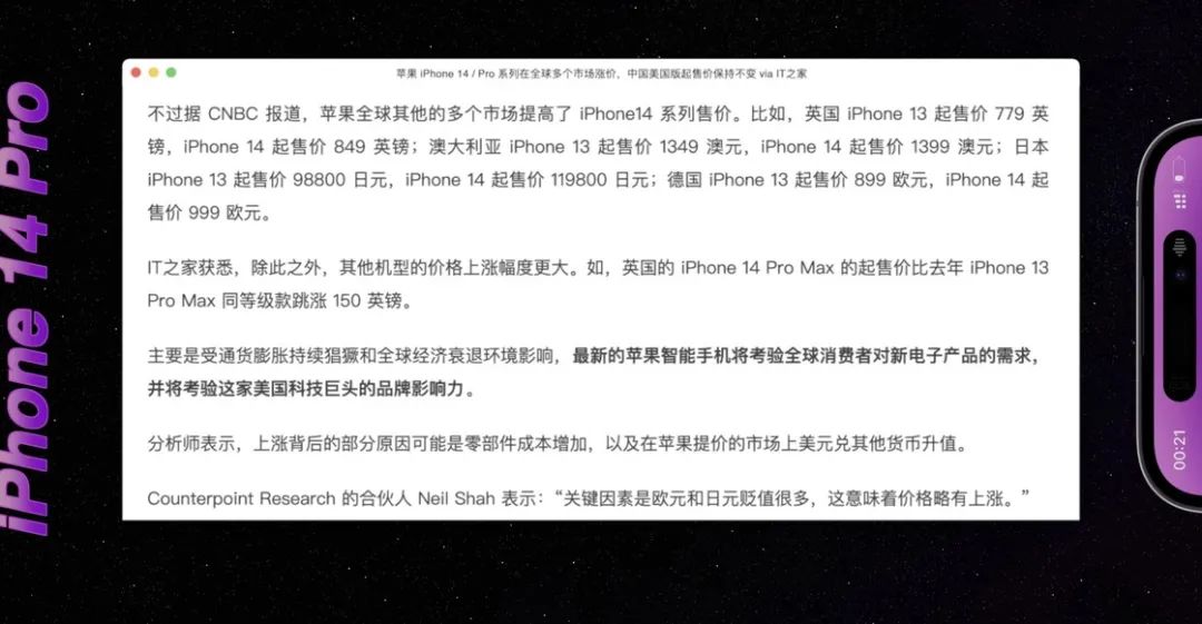 楼斌老师的拆解对比,红线就是导音孔的位置,虽然导音孔变细了,但是这代音质还是有提高,也不知道他们怎么搞的。并且在 16.1 beta 版本上,单手模式还可以把灵动岛一起拉下来,虽然我是觉得这样有点丑陋,但是单手用确实更容易了,这不也进一步的证明,灵动岛本身就是奔着解决问题去的,根本不介意暴露这个孔的存在吗?我相信硬件的孔未来会越做越小,但是灵动岛依然会存在,因为他要解决的问题一直在,并且同样存在这个问题的还有 iPad,未来他展示信息的区域会越来越大,甚至当 Face ID 完全可以做到屏下的时候,这个岛就不限于是黑色的,完全可以根据内容定义不同的颜色,就像一个正常的小组件。等到那个时候,可能就是 iPhone 的最终形态了。其次我觉得灵动岛跟 TouchBar、3D Touch 这俩是完全不一样的东西,3D Touch 他是典型的先有了这个交互或者说技术,再去想配套场景的一个功能,他解决的问题是很模糊的,甚至我觉得有些根本就称不上是个问题,再加上学习成本很高,导致了有很多人用到最后,手机都换了还不知道什么情况下可以重按。为了做这期视频,我又看了一遍 6s 发布会,就直到今天我也感觉他展示的功能很迷惑而 TouchBar 的失败也是因为不知道专业用户真正需要什么,专业用户是非常依赖快捷键的肌肉记忆和习惯的,把功能区按键直接替换成可编程的触摸屏,对很多专业用户其实是在帮倒忙,产品价值公式放在这个场景,你的新体验减去学习和适应的成本,最后得到的很有可能是个负值。这些专业用户往往又是 Mac 生态中最核心的用户。所以这俩功能失败本质上还是产品定义的失败,不知道要解决什么问题,不知道要为谁解决。俞军老师这本书,牛逼的但是灵动岛不仅仅是一开始就把要解决什么问题说的很清楚,并且在纯功能角度,你获得了新的状态展示区域之后,并没有什么代价,他利用的空间,完全是用硬件体积的缩小换回来的。原本应该展示的时间、信号电量啥的,相比于之前的产品一个都没少,就给人感觉想的特别清楚,这样用户用起来也不会迷惑。这个图应该很清楚了至于说灵动岛能实现的功能,因为三方开发者的适配都要等到下个月 16.1 的正式版才能看到,我就不在这重复一遍音乐导航倒计时了,三方的适配才是灵动岛的重中之重。这里我有一个很有意思的想法,跟大家分享一下,就是我在游戏版本更新的时候,经常是等的不耐烦我就切出去干别的了,如果这时候游戏更新的进度可以上岛,更新完提醒我一下,我点击直接进入,这是一个非常连贯的体验,相当于给游戏加了一个全局的应用入口。不知道你们觉得我这个想法怎么样?反正我觉得还是很合理的,到时候看看有没有哪家这么做的。这个功能其实 ColorOS 闪回键做了,他们产品经理想的也是非常细的最后就是动效,可能这也是很多人感知最显性的部分,让灵动岛配得上灵动这个名字,如果看过发布会的朋友们,可能注意到了,今年发布会在讲 A16 的时候,特意提到了全新的显示引擎,除了可以实现 1Hz AOD 之外,他们还重点强调了为灵动岛的动画增加了全新的抗锯齿算法。这才是真的邪门的地方,因为如果不把灵动岛的一部分动画,固化在硬件中,这些非线性动画组合在一起,功耗是非常高的,安卓这边不是不能做,但是功耗肯定受不了。所以整套灵动岛的体验,不仅仅是软件和屏幕硬件的配合,还有 A16 算法的支持,就你真的不敢细想,因为如果你发现 Apple 可能在 3-4 年前就开始琢磨这个东西的时候,你不会说 Apple 牛逼了,你只会说它很可怕,他在软硬件上的沉淀,让你难以望其项背,所以我才在视频里说,这个功能充分体现了 Apple 深厚的软硬件整合能力。横跨四个一级部门做出的软硬件整合方案,时间进度同时匹配 14 Pro 落地,这事儿你能细琢磨吗?并且在纯软件体验很难构成差异化的今天,Apple 在软硬件整合方面的优势还在一点点扩大,不仅仅体现在灵动岛,还有今年的相机。▍相机那我在这还是不会讲太多实际的拍照效果。十一国庆我打算出去,带上这些旗舰机好好拍一下,节后回来专门做个影像的对比。这期我先做一点铺垫,讲讲 Apple 的 4800w 到底是怎么回事,跟安卓有什么区别?因为在我去年做 iPhone 13 Pro 相机解析的时候,我当时就看到很多弹幕在说,拿 Apple 1200w 像素跟安卓动不动 4800w 5000w 放大比清晰度是不是欺负人。所以啊朋友们,科普这件事还任重道远,大家还是得提高鉴别能力,得分清什么是营销噱头,什么是真正的体验提升。现在手机上用的 4800w 5000w 高像素,跟传统意义上在微单、单反的高像素,并不一样。手机上用的高像素传感器是四拜耳排列,说白了就是原本 1200w 像素的传感器,每个像素上横竖各切一刀,把一个像素分成四个。那这样做有什么好处呢?第一个他支持把切开的四个像素合在一起用,说白了,像素是个水杯,他要像装水一样把光装进来,四个像素合并成一个,杯子变大了,水容量也变大了,画质也就更好了,实际上各家的产品为了保证更好的画质,在自动模式拍的照片都是清一色的 1200w,并且这样处理器的压力也会小很多,计算时间短,拍照体验也更好。第二个像素分开用情况会稍微复杂一点,因为传感器其实可以输出两种高像素模式,第一种是针对不支持处理四拜耳排列的处理器,传感器可以通过猜色算法,先把四拜耳排列转换成拜耳排列,再由手机处理器经过一次猜色算法,把拜耳排列转换成 RGB