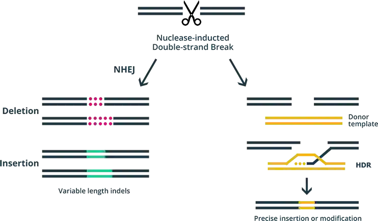 DNA双键断裂后的两种修复模式。图片来源:emendobio.com