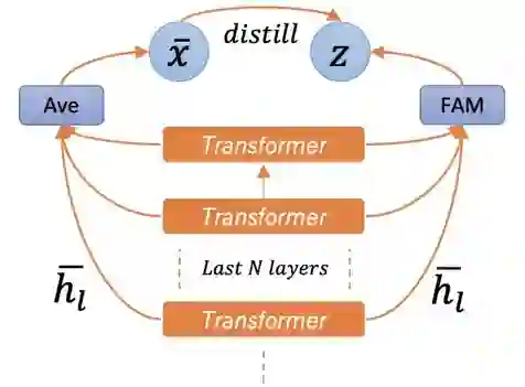由于预训练模型不同层的特征具有的迁移能力不同 [6,7],为了能够达到更好的迁移效果,我们把多层的特征融合到一起。在 FAM 中,我们通过注意力机制来学习各层特征的权重,然后将乘上权重后的特征相加,作为 FAM 的输出。