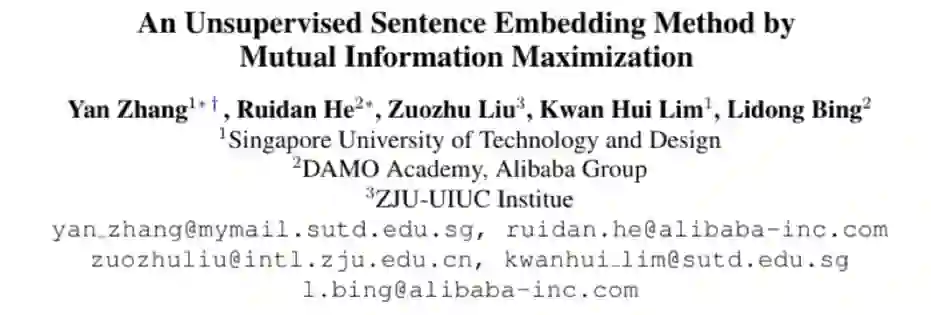 最后,我们用一个基于互信息的损失函数来学习最终的句向量。该损失函数的出发点是最大化句子的全局表征(句向量)与局部表征之间的平均互信息值,因为对于一个好的全局句向量,它与所对应的局部表征之间的 MI 应该是很高的, 相反,它与其他句子的局部表征间的 MI 应该是很低的。