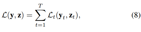 损失函数通过对比输出 y_t 和目标 z_t 之间的差距而评估了神经网络的性能,它可以形式化表达为: