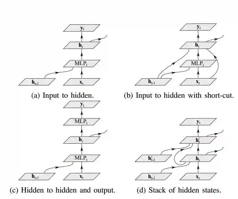 (1)深度输入到隐藏:其基本思想之一是将多层感知机(MLP)结构引入转换和输出阶段,分别称为深度转换 RNN 和深度输出 RNN。