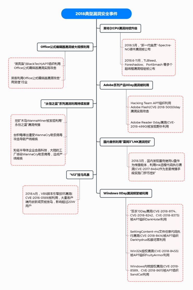 同时,英特尔CPU“新一代幽灵”漏洞持续升级、Office公式编辑器再曝栈溢出漏洞等问题引发的安全事件同样也值得关注。该报告预测,未来几年,鱼叉攻击结合Office公式编辑器漏洞,仍然会是成为针对中小型企业的攻击手段之一。