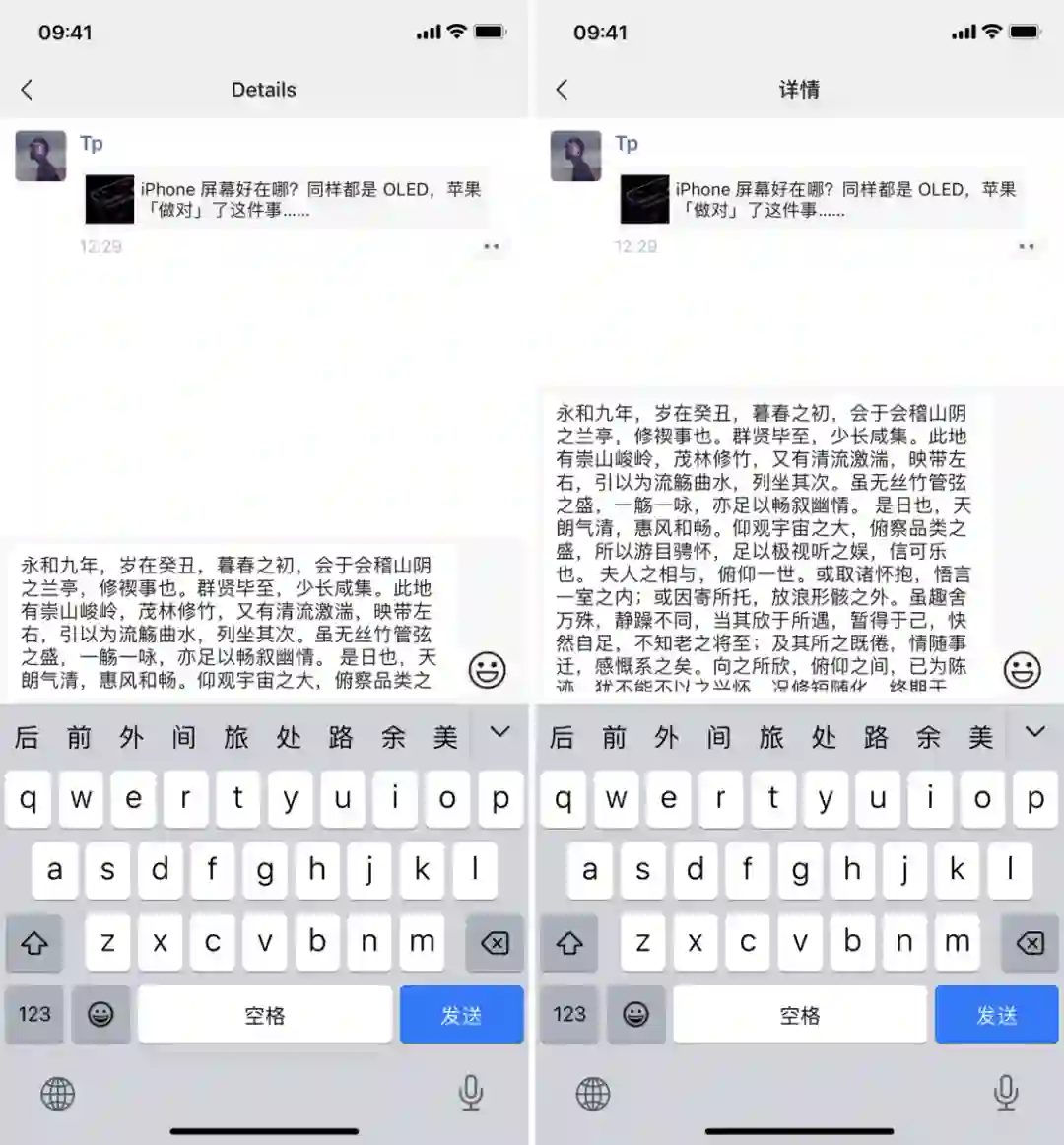 无论是在单条朋友圈的详细页面,还是在朋友圈的时间流,都可以实现此功能。这个更新统一了朋友圈输入框逻辑与聊天框的逻辑,算是一个「完善体验」性质的更新。