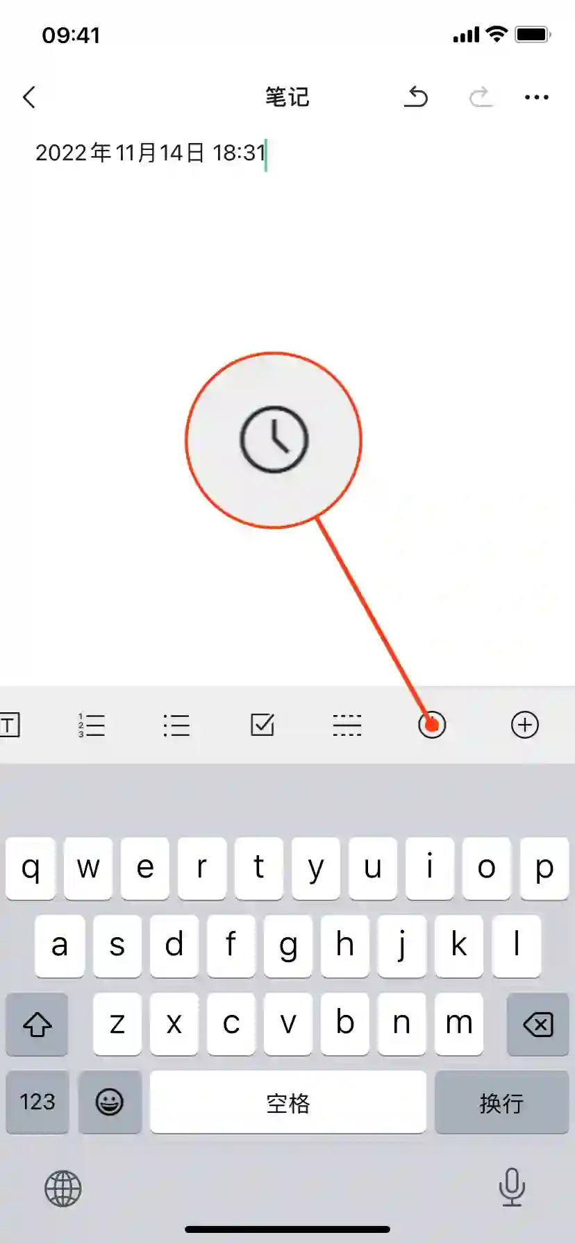 相信许多人都知道,在微信的「收藏」界面中是可以做笔记的。本次更新中,微信为键盘上方的工具栏新增了「插入时间」的功能。只需要向左滑动工具栏即可找到 🕔 的图标,点击即可以「yyyy 年 MM 月 dd 日 HH:mm」的格式输入时间。