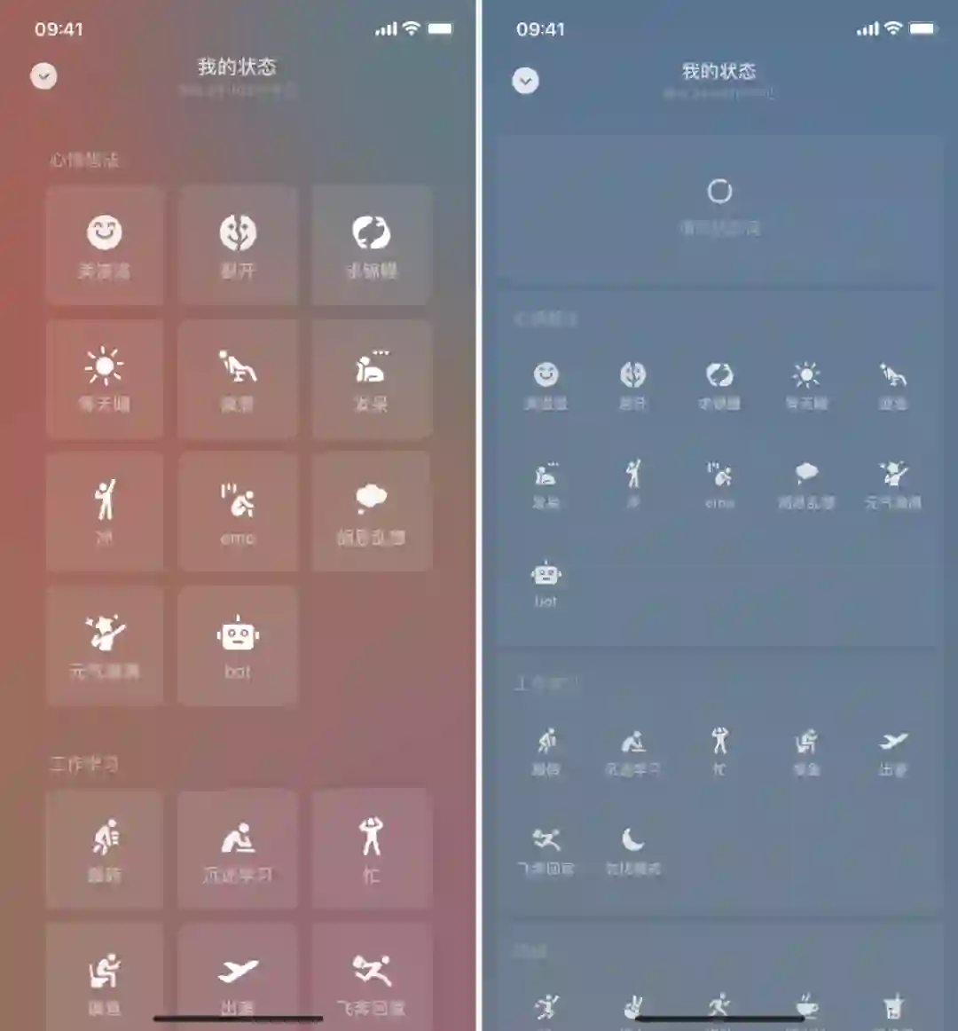 微信 8.0.30 还微调了「状态」界面的设计,将同类状态合并在同一个矩形下,一屏可以显示更多状态图标。
