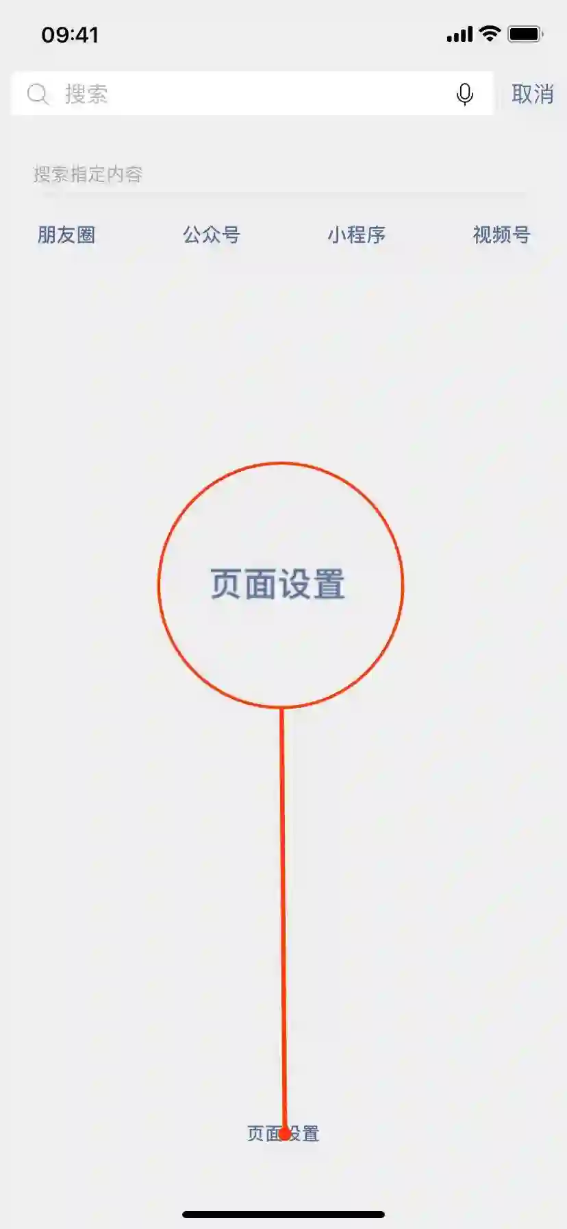 微信 8.0.30 为搜索界面新增了自定义开关。在主界面点击顶部的「搜索」后,点击页面上方空白区域或在空白区域下滑即可收起键盘,找到「页面设置」按钮。