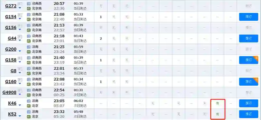 现在生活越来越好了,本来坐普快的现在加点钱也想坐高铁省一点时间,本来站票也得走的现在想等一张坐票,上面例子中说的从济南到北京的,不是没票,也有余票: