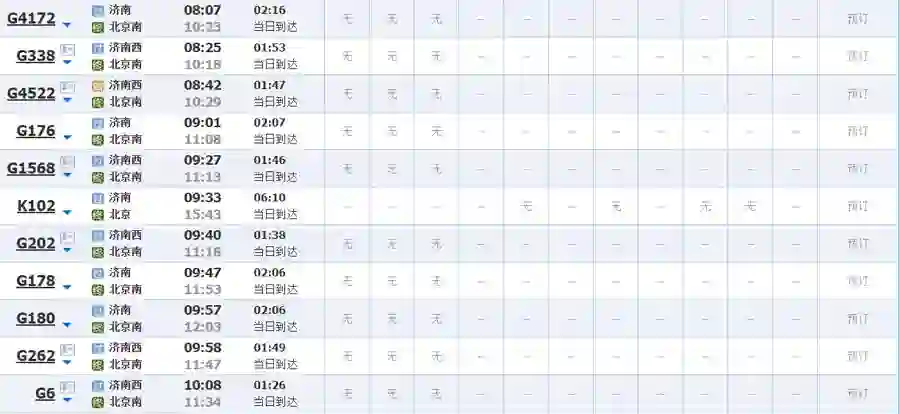如果在春节等这样的传统节假日非要选择高铁出行,那么可以试试选择买区间票,比如你要从济南到北京南的票没了,试试买买看是否有济南到北京南途径德州的济南到德州段车票,然后上车补票。