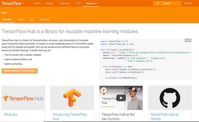 TF Hub 的地址是:tensorflow.org/hub/