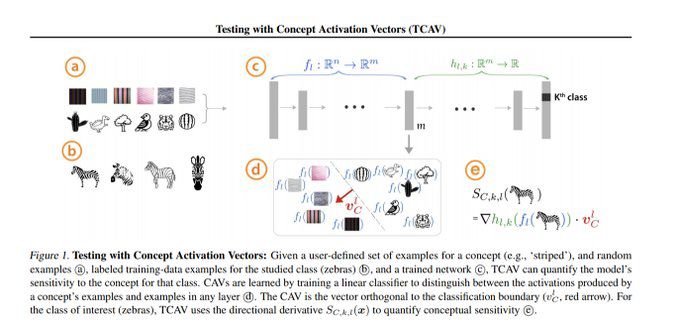 类似的道理:大多数可解释性方法显示每个输入特征(例如,像素)中的重要权重。相反,TCAV 显示了高层次概念(例如,颜色、性别、种族)的重要性,即人类如何交流。