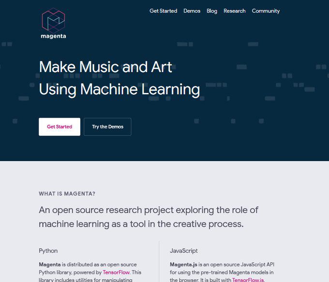 网址:https://magenta.tensorflow.org/