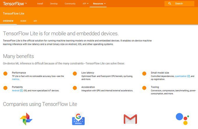 用 TFLite 可以在手机和嵌入式设备上部署模型。如果你看到安卓手机上有检测植物叶子是否有疾病的 APP,或者小型的、具备 AI 技能的机器人,那么它们很有可能使用了 TFLite。