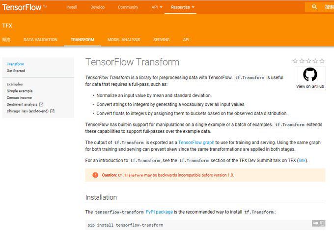 网址是:https://www.tensorflow.org/tfx/transform/?hl=zh-cn