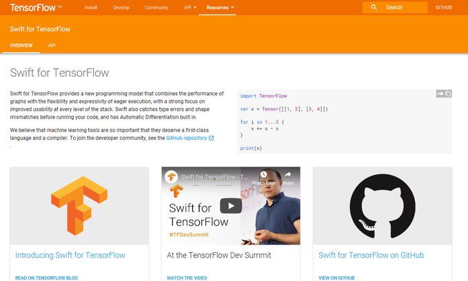 网址:https://www.tensorflow.org/swift/
