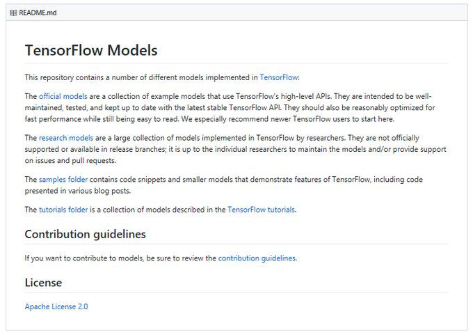 网址是:https://github.com/tensorflow/models
