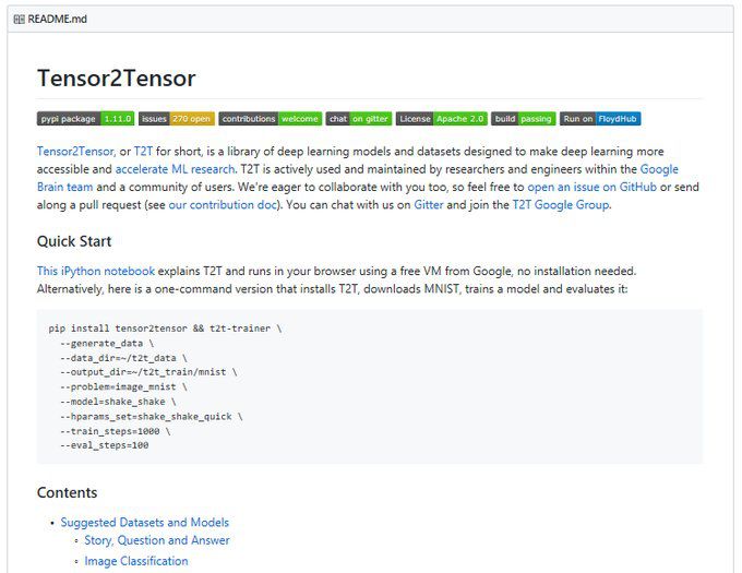 网址:https://github.com/tensorflow/tensor2tensor