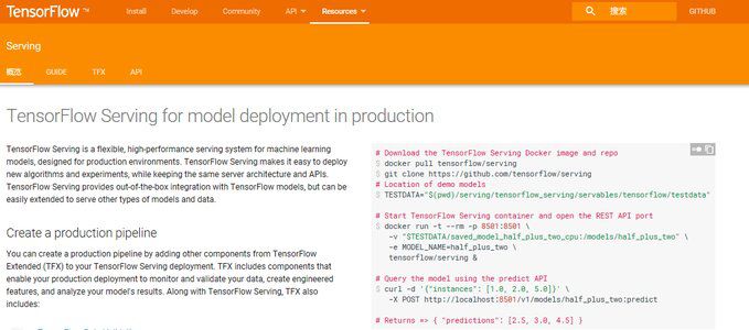 网址是:https://www.tensorflow.org/serving/?hl=zh-cn