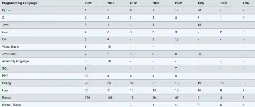 详细榜单信息可参考 TIOBE 官网:https://www.tiobe.com/tiobe-index