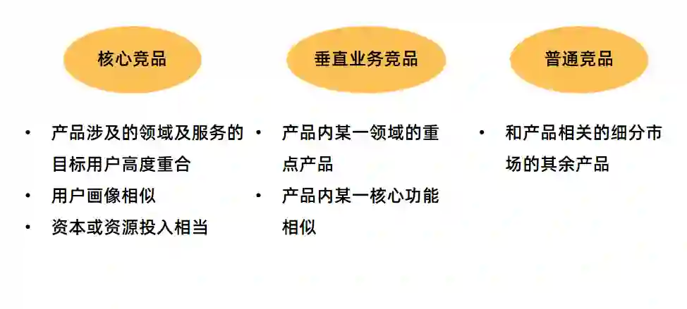 竞品的类型可以分为核心竞品,垂直业务竞品、普通竞品;在选取竞品时,注意结合目的选择合适的竞品类型。