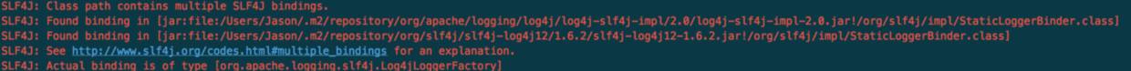 使用slf4j进行log的定义,注意需要保证项目中不再依赖于slf4j1。如果启动时有如下提示,说明依然依赖了多个slf4j