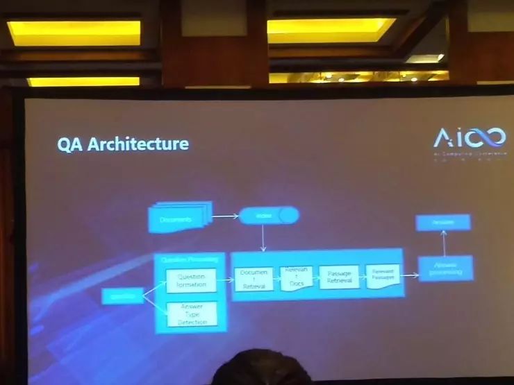 这个是基于信息检索系统 Q&A 的基本架构。刚才我们介绍,Q&A 的实验可以分三大类,一类是基于信息检索的,还有一类是基于社区的问题,像百度知道,还有知乎等等。另外一类是基于知识库或者知识图谱的问答,这个相对来说比较火。