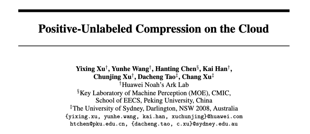 论文地址:https://papers.nips.cc/paper/8525-positive-unlabeled-compression-on-the-cloud.pdf