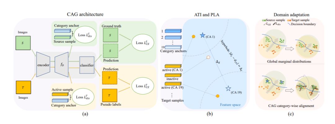 首先,使用源域特征的分类中心作为引导锚来识别目标域中的活动特征,并为其分配伪标签。