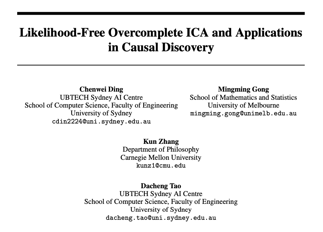 论文地址:https://papers.nips.cc/paper/8912-likelihood-free-overcomplete-ica-and-applications-in-causal-discovery.pdf