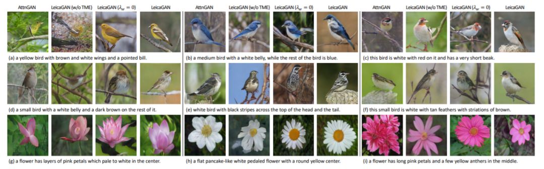 我们利用对抗性学习,让 LeicaGAN 增强语义一致性和视觉逼真度。在两个公开基准数据集上进行的全面实验证明了 LeicaGAN 优于基线法。