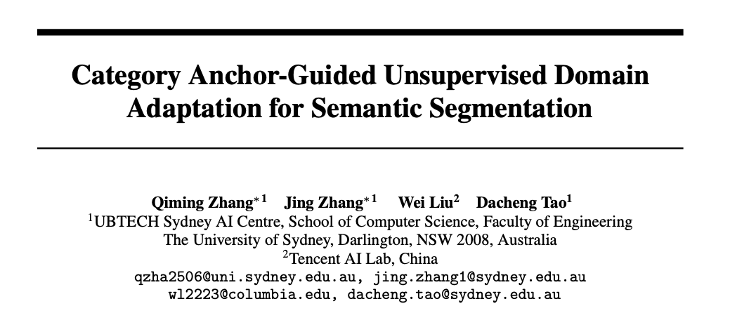 类别锚引导的无监督域自适应语义分割(Category Anchor-Guided Unsupervised Domain Adaptation for Semantic Segmentation)