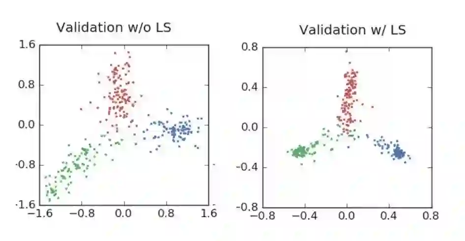 你可以看到的,标签平滑强制对分类进行更紧密的分组,同时强制在聚类之间进行更等距的间隔。