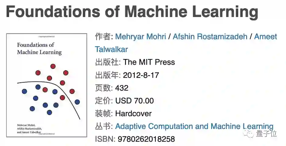 推荐大家读一下《Fundation of Machine Learning》!我相信无论是小白还是行家,都会从这本书中得到更多新的见解。