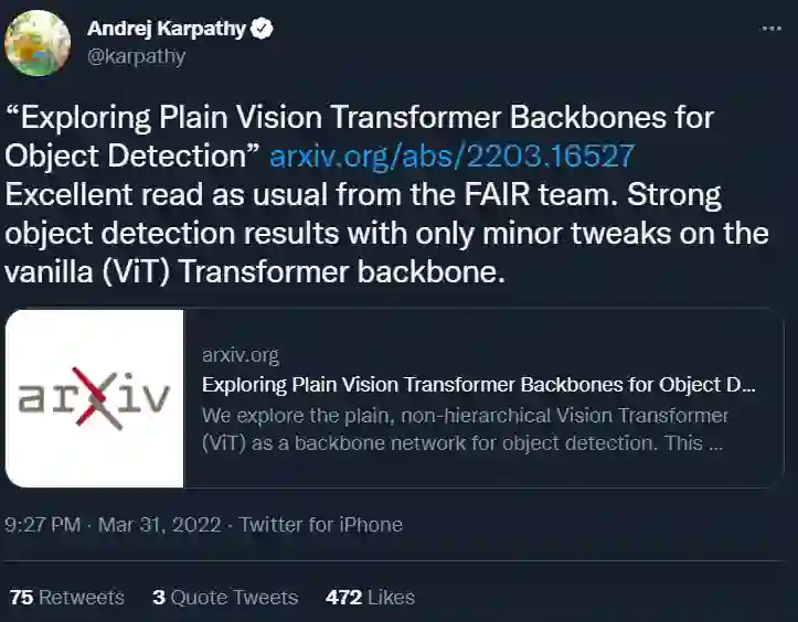 后台回复:ViTDet,即可下载上面论文