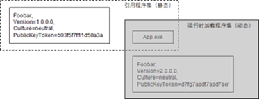 如下图所示,我们的应用程序(App)引用了具有强签名的程序集“Foobar, Version=1.0.0.0, Culture=neutral, PublicKeyToken=b03f5f7f11d50a3a”,所以对于编译后生成的程序集App.exe来说,对应的程序集引用将包含目标程序集的文件名、版本和公钥令牌。