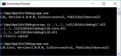 接下来我们将针对V2版本的两个程序集拷贝进来后再次执行App.exe,我们发现此时的Foobar类型已经是从新的程序集Lib.Core.dll中加载的了。