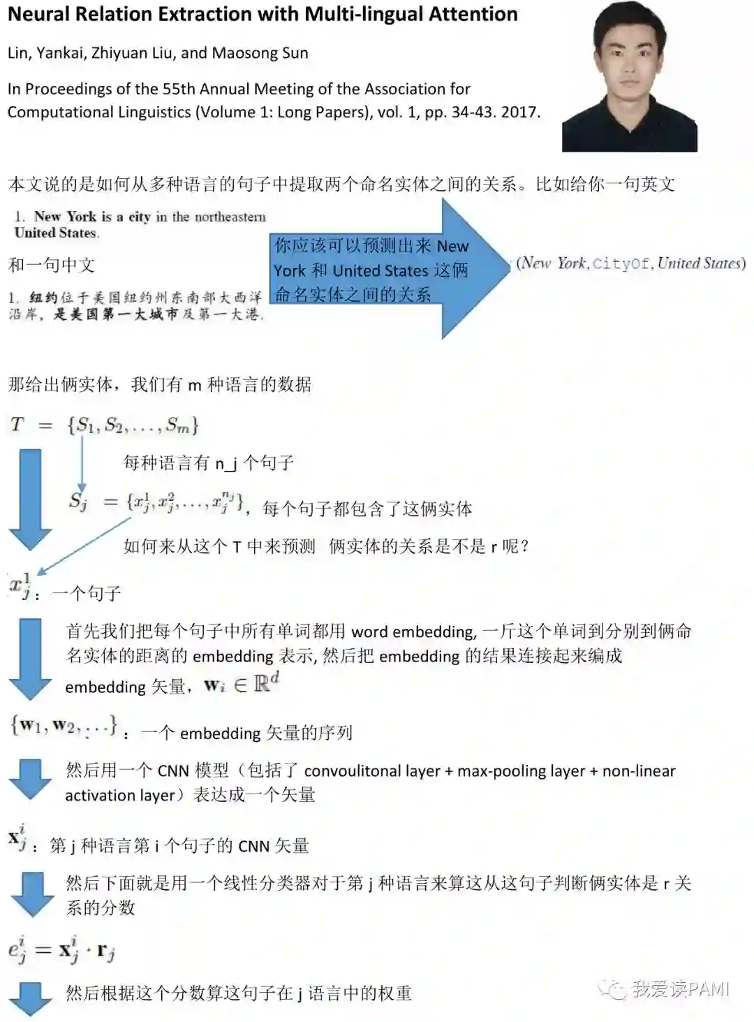 你看这个句子中有俩命名实体,我们要从中提取他们之间的关系。关系提取呢,可以从一种语言中提取,也可以从多个语言中提取。本文讲的就是如何在多种语言中暗通沟渠,预测俩实体之间的关系。作者是清华的牛逼博士生, Yankai Lin。