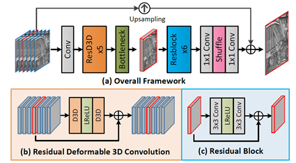 现有的视频超分辨算法大多是两阶段的(two-stage),即先在空域进行特征提取,然后在时域进行帧间运动补偿。此类框架无法充分结合视频序列内的时空信息,从而限制了超分辨性能,降低了输出视频序列的流畅性。