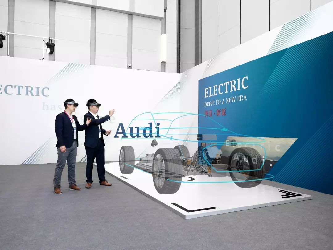 在 11 月 5 日中国国际进口博览会上完成中国首秀之后,广州车展上,奥迪 e-tron 成为了大众汽车集团展示区的主角之一,奥迪用 AR 展示了引以为傲的动能回收、三电系统等功能,而在去年的广州车展上,同样的位置展示的还是奥迪 A8 的自动驾驶技术。