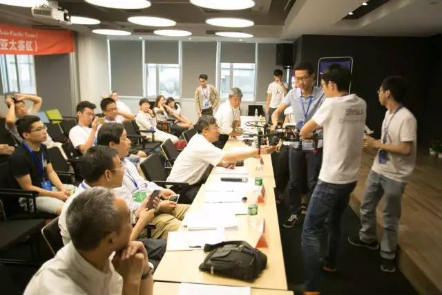 罗伯特教授和王英勋教授为参赛队讲解起位位置的注意事项